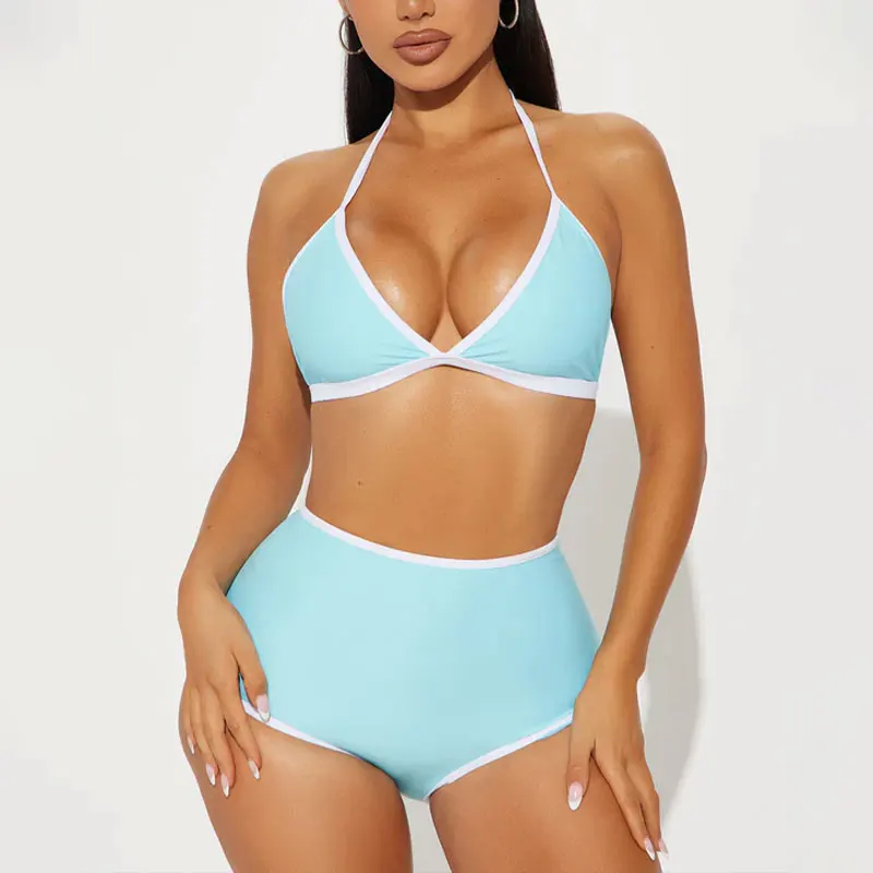 Huili Manufacturer Oem High Quality 2 Piece Shorts Beachwear Set Swimsuit Custom logo Print Color Block Trim Bikini for Women